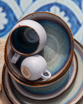 Terrafina kollektionen er et samarbejde med Ceramirupe, en portugisisk keramikvirksomhed kendt for deres dedikation til bæredygtighed og kvalitet. Ceramirupe's håndværk resulterer i keramik, der kombinerer traditionelle teknikker med moderne innovation. Hver skål er et kunstværk, lavet med minimal forarbejdning for at bevare den naturlige skønhed af råmaterialerne.